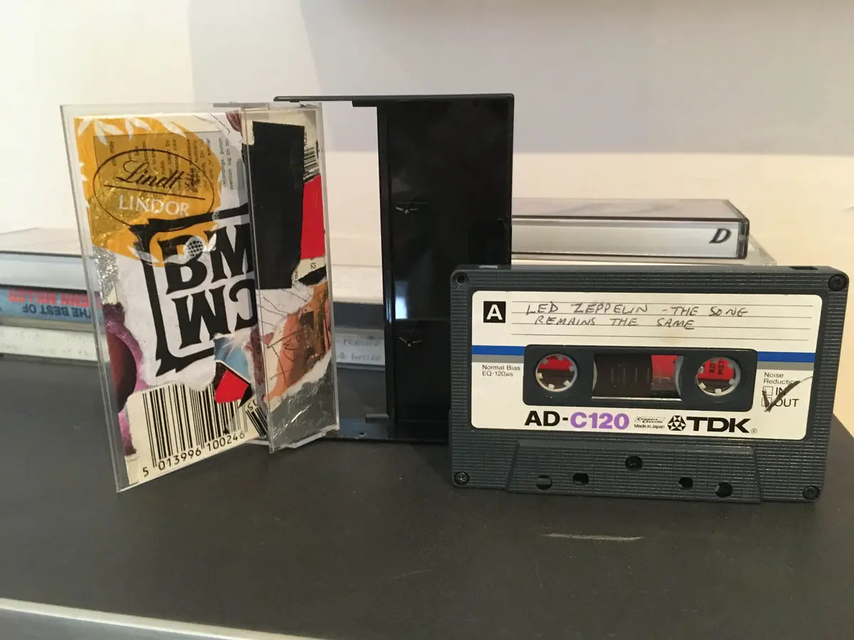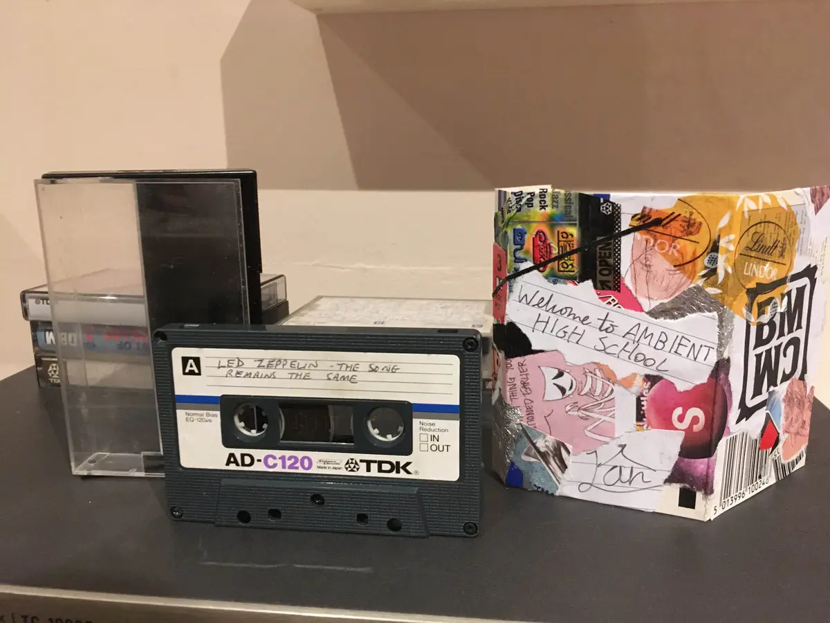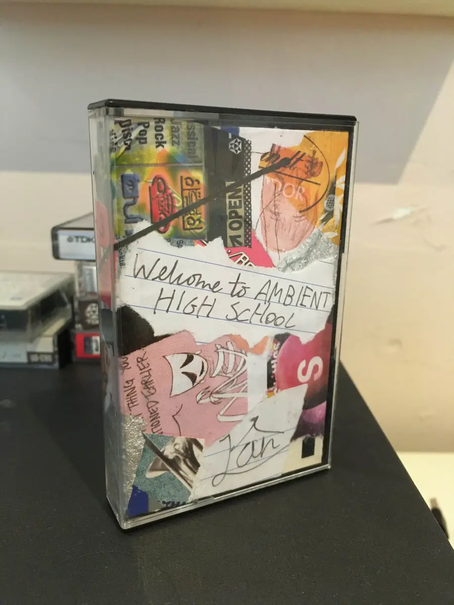 Single edition recycled c120 tape, comes in a clear fronted black back case with a handmade collage 4 panel J-card