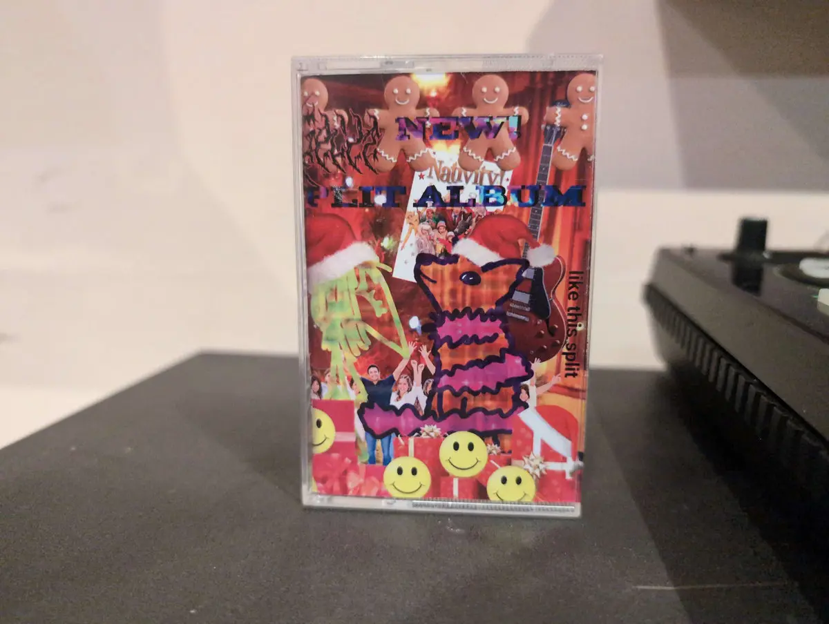Recycled ~c60 cassette in a (sometimes) clear case and a standard 3 panel j card, printed on high quality 250gsm paper, album repeats on both sides.
